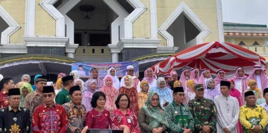Puruk Cahu, Neo Nusantara.id – Pemerintah Kabupaten Murung Raya menyambut kedatangan jamaah haji yang baru pulang dari kota suci Mekah di halaman masjid Al – Istiqlal Puruk Cahu pada Kamis, (20/7/2023).