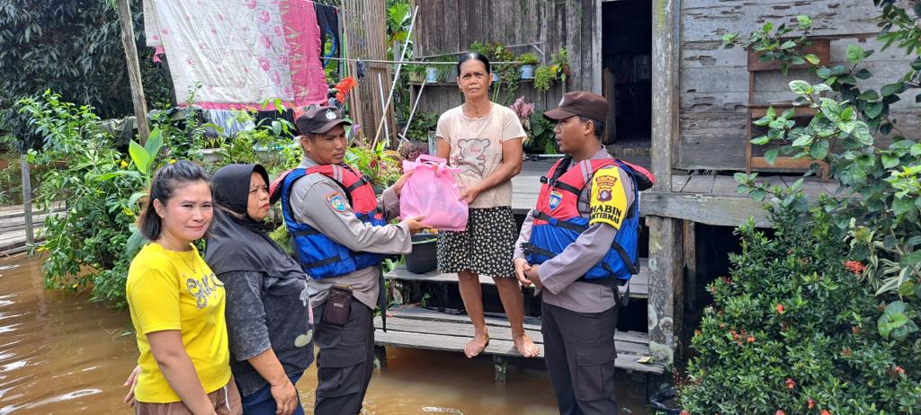 Kapolres Mura AKBP Irwansyah,S.I.K.,M.M., melalui Kapolsek Permata intan IPDA Rio D. Makota,S.Th.,M.Pd., turun langsung ke lokasi titik banjir dan membagikan bantuan sembako kepada masyarakat yang rumahnya tenggelam akibat banjir di Kelurahan Tumbang Lahung, Kecamatan Permata Intan pada Kamis (30/11/2023).