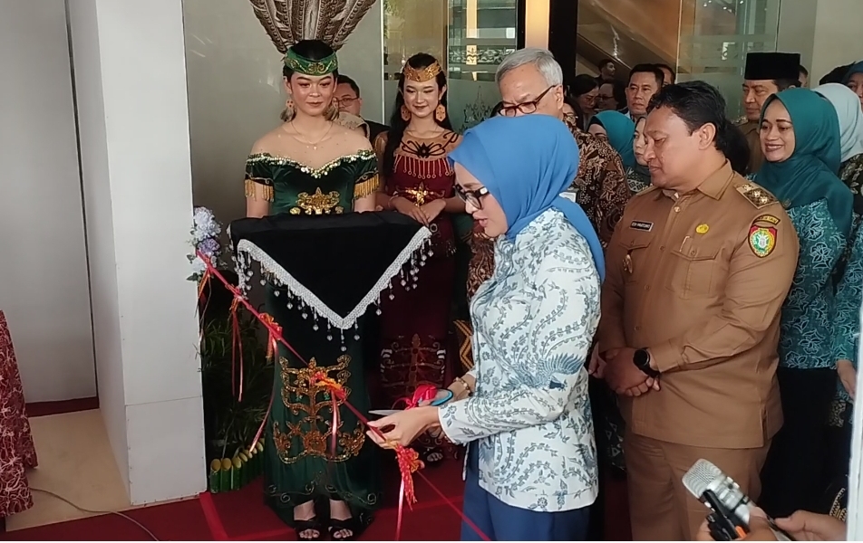 Foto: Ketua Tim Penggerak PKK Provinsi Kalteng, Yulistra Ivo Sugianto Sabran saat memotong pita tanda dimulainya pameran inovasi penurunan Stunting tingkat Kalteng 2024.