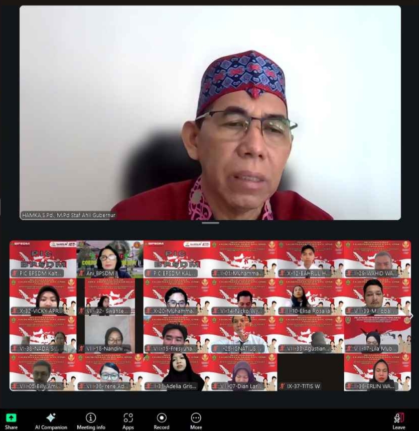 Palangka Raya, neonusantara.id – Badan Pengembangan Sumber Daya Manusia (BPSDM) Provinsi Kalimantan Tengah kembali menggelar Ceramah Muatan Teknis Substansi Lembaga (MTSL) bagi peserta Pelatihan Dasar Calon Pegawai Negeri Sipil (Latsar CPNS) Tahun 2025, Kamis (24/7/2025). Kegiatan ini ditujukan untuk peserta dari Golongan II Angkatan II serta Golongan III Angkatan VI hingga X, dan dilaksanakan secara daring melalui platform Zoom Meeting.