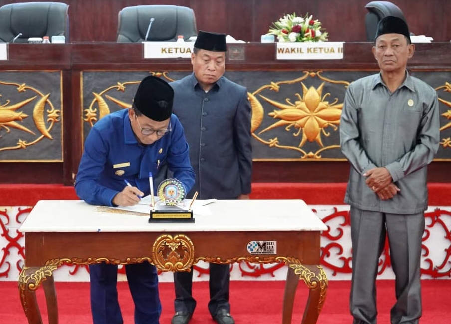 Murung Raya, neonusantara.id – DPRD Kabupaten Murung Raya (Mura) menggelar Rapat Paripurna ke-7 Masa Sidang II Tahun 2025 dengan agenda penandatanganan dan penyerahan Keputusan DPRD serta Berita Acara Persetujuan bersama dua Raperda sekaligus penyerahan Raperda tentang pertanggungjawaban pelaksanaan APBD tahun anggaran 2024 dan penyerahan Raperda tentang RAPBD Perubahan tahun Anggaran 2025.
