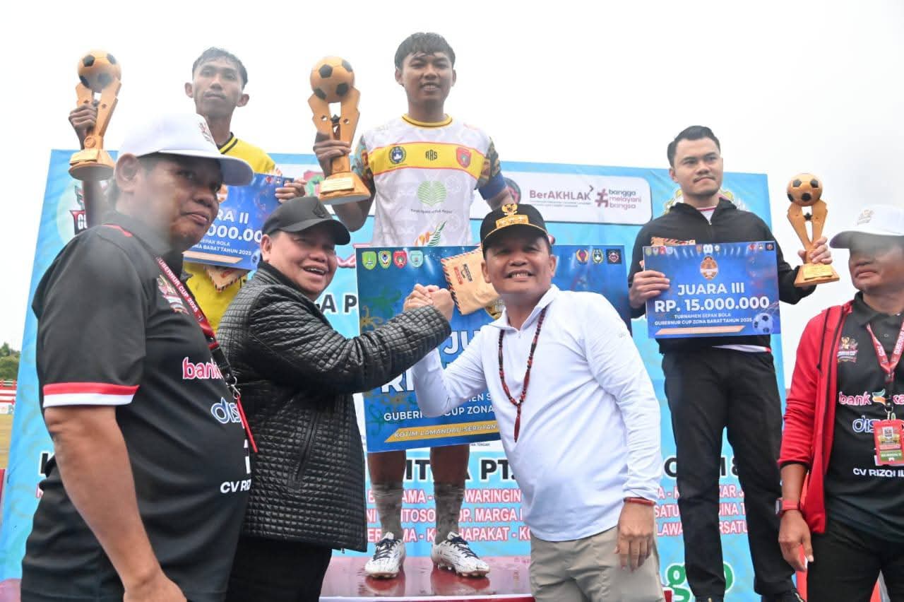 Sampit, neonusantara.id — Gubernur Kalimantan Tengah, Agustiar Sabran, secara resmi menutup Turnamen Sepak Bola Gubernur Cup Zona Barat Tahun 2025 yang digelar di Stadion 29 November, Sampit, Sabtu (4/10/2025).
