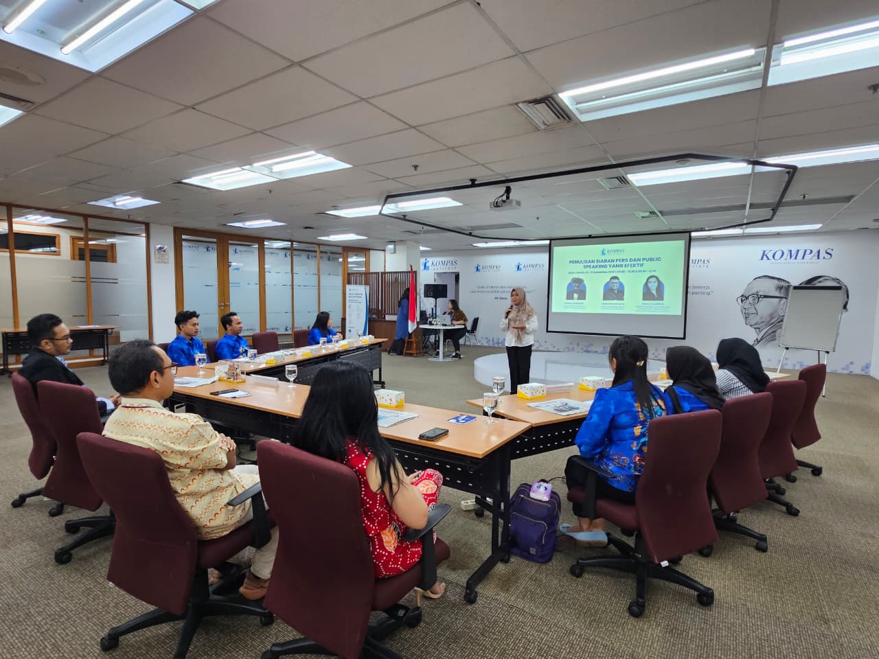 Pelatihan ini memberikan pembekalan terkait teknik dasar jurnalistik, penulisan siaran pers yang efektif, konten berita di kanal digital, serta public speaking. Narasumber dari Kompas Institute menyampaikan materi praktis, termasuk teknik menulis berita menarik dengan kalimat efektif, prinsip etika jurnalistik, dan strategi membangun citra positif instansi melalui pemberitaan berkualitas.