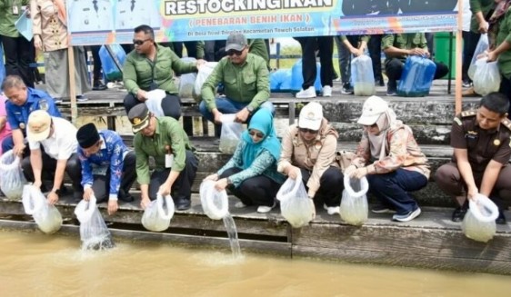 Bupati Barito Utara Tebur Benih Ikan Di Desa Trinsing, Dorong Kemandirian Pangan Dan Pemberdayaan Nelayan
