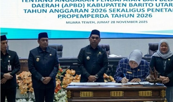 MUARA TEWEH, neonusantara.id – Pemerintah Kabupaten Barito Utara menyampaikan Pendapat Akhir Fraksi-Fraksi DPRD terhadap Rancangan Peraturan Daerah (Raperda) tentang Anggaran Pendapatan dan Belanja Daerah (APBD) Kabupaten Barito Utara Tahun Anggaran 2026, dalam Rapat Paripurna IV Masa Sidang I Tahun 2025 yang digelar, Jumat 28 November 2025. Rapat paripurna tersebut menjadi salah satu tahapan penting dalam proses penyusunan APBD 2026, yang diharapkan dapat menjadi landasan perencanaan pembangunan daerah secara lebih terukur dan tepat sasaran. Bupati Barito Utara, Shalahuddin, menyampaikan apresiasi kepada seluruh anggota DPRD atas berbagai saran, koreksi, dan masukan konstruktif selama proses pembahasan anggaran.